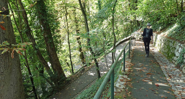 We take the back way down -- a shady tree-filled park with switchbacks the whole way down.